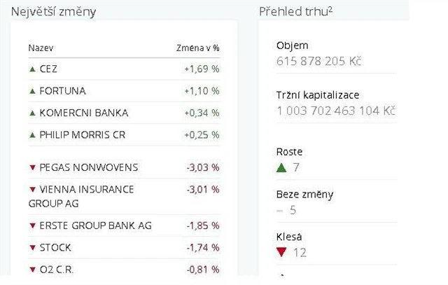 Zisk si připsaly čtyři ze 14 hlavních emisí, nejvýrazněji si polepšily akcie ČEZ, které zdražily o 1,69 % na 450,60 Kč.