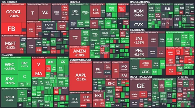 V zelených číslech skončilo sedm z jedenácti hlavních sektorů S&P 500, dařilo se zejména finančnímu odvětví a realitnímu sektoru, výrazně naopak klesl technologický sektor.