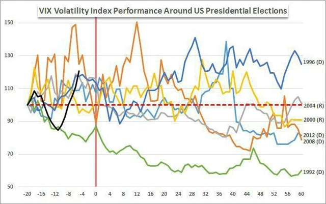Hlavní událostí, jež v těchto dnech hýbe sentimentem na trzích po celém světě, jsou americké prezidentské volby, které se budou konat již v úterý. Zatímco před týdnem se takřka bralo za samozřejmé, že vítězkou bude demokratka Hillary Clintonová, v tomto týdnu se kvůli zásahům FBI preference obou kandidátů vyrovnaly a investoři s obavami vyhlížejí úterní bitvu. Co by případné vítězství Donalda Trumpa znamenalo pro akciové trhy, je prakticky nemožné predikovat. Dokladem toho je i vývoj indexu volatility VIX v průběhu posledních šesti soubojů o post prezidenta USA.