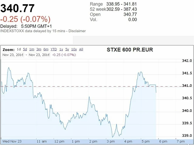 Regionální index STOXX Europe 600 uzavřel se ztrátou 0,07 % na 340,77 bodu, když odpoledne přišel o zisk z úvodu seance. Ten byl nesen zejména pozitivními údaji kompozitního indexu nákupních manažerů v eurozóně. Dopoledne zveřejněná listopadová předběžná hodnota 54,1 bodu je nejvyšší od prosince 2015.