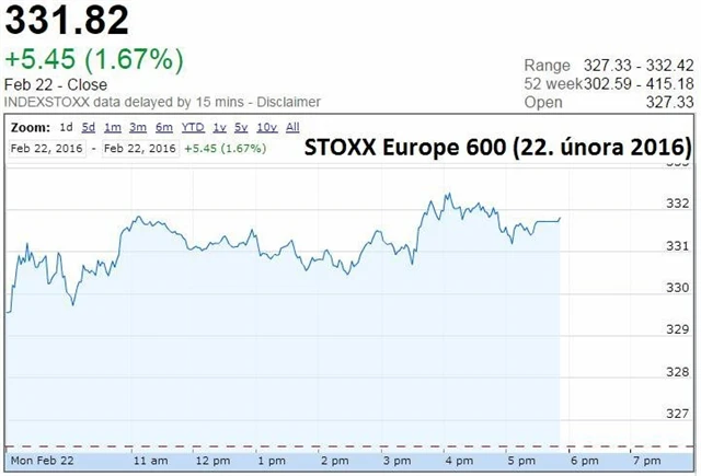 Britský FTSE 100 připsal 1,47 %, francouzský CAC 40 1,79 % a německý DAX 1,98 %. Regionální STOXX Europe 600 posílil o 1,67 % na 331,82 bodu, nahoru ho vedli především těžaři.