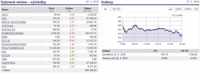 Index PX v úterý odepsal 0,84 % na 879,15 bodu.
