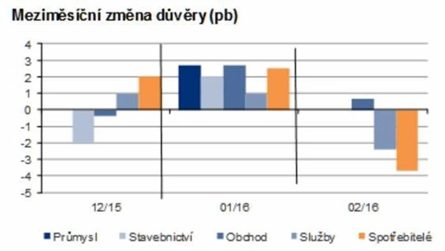 Hlavní ekonom Generali Investments Radomír Jáč upozornil, že údaje za únor představují první meziměsíční pokles od loňského října. "Ačkoliv nejde o nějak dramatický vývoj, tak tyto signály odpovídají předpokladům, že letos dojde ke zpomalení tempa růstu české ekonomiky po superlativním růstu HDP zaznamenaném v roce 2015," myslí si Jáč.