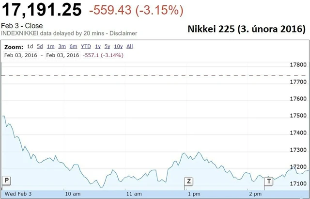 Šéf japonské centrální banky Haruhiko Kuroda v noci na středu řekl, že Bank of Japan může snížit úrokovou sazbu na nadlimitní rezervy komerčních bank u centrální banky hlouběji do záporu pod aktuální hodnotu -0,1 %. Podle Kurody bude aktuální nastavení měnové politiky účinné, ale kdyby ke splnění 2% inflačního cíle nestačilo, přijde centrální banka s dalšími nástroji na oživení ekonomiky.