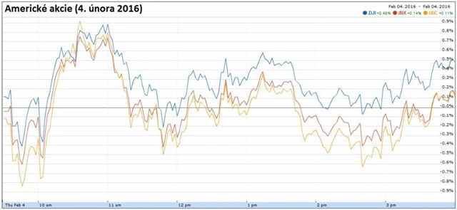 Dow ve čtvrtek zpevnil o 0,49 % na 16 416,58 bodu, širší S&P 500 připsal 0,15 % na 1 915,45 bodu a Nasdaq Composite uzavřel se ziskem 0,12 % na 4 509,56 bodu. Index volatility VIX vzrostl o 0,88 % na 21,84 bodu a výnos 10letých vládních dluhopisů USA se snížil o čtyři bazické body na roční minimum 1,848 %.