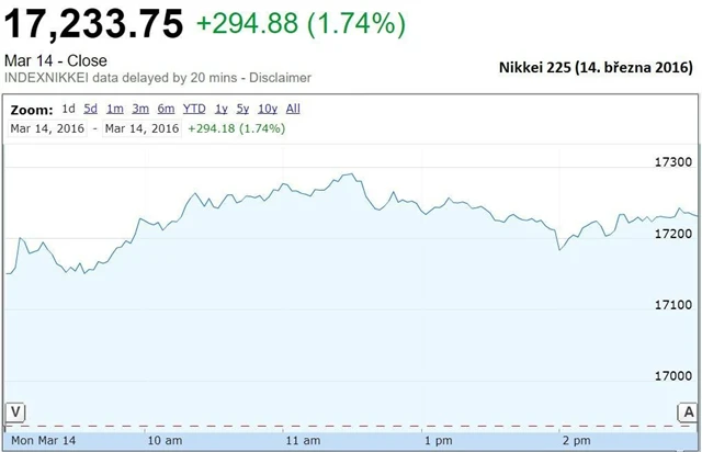 Čínské akcie rovněž zamířily nahoru - Shanghai Composite zpevnil o 1,76 % na 2 859,88 bodu, zatímco menší Shenzhen Composite přidal 3,56 % na 1 745,28 bodu.
