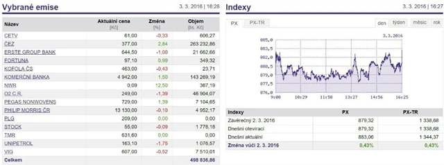 Index PX ve čtvrtek zpevnil o 0,43 % na 883,06 bodu.