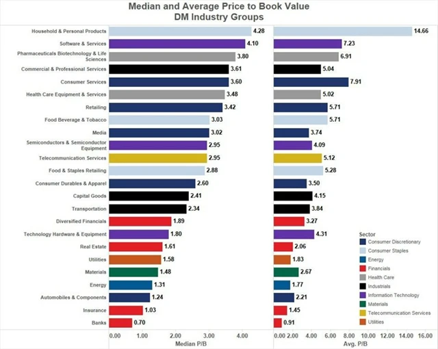 Toto je jediný sektor na americkém akciovém trhu, který se obchoduje pod účetní hodnotou