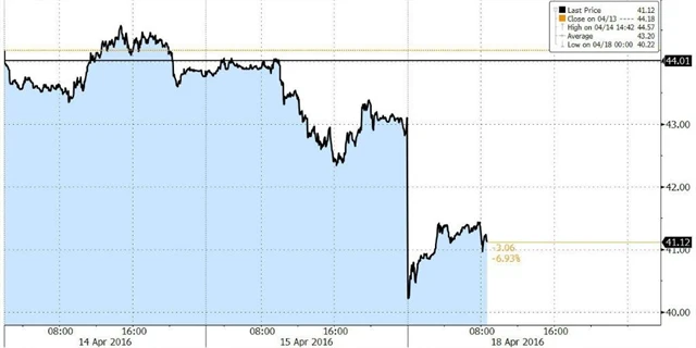 Představitelům členských a nečlenských států Organizace zemí vyvážejících ropu (OPEC) se v katarském Dauhá nepodařilo dosáhnout dohody o zmrazení těžby na lednové úrovni, protože Saúdská Arábie trvá na tom, aby se k dohodě připojil i Írán. Katarský ropný ministr Muhammad Sadá uvedl, že OPEC potřebuje více času na projednání dohody. Ruský ministr Alexandr Novak později sdělil, že je výsledkem zklamán, dveře pro globální dohodou ale prý nejsou zavřené.