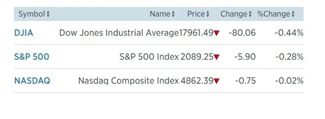 Nečekané rozhodnutí Bank of Japan nerozšiřovat ekonomický stimulus se podepsalo na začátku čtvrtečního obchodování na Wall Street. Zatímco technologický index Nasdaq těžil z dobrých výsledků Facebooku, index Dow se v jednu chvíli propadal i o více než 100 bodů. (28. 4. 2016)