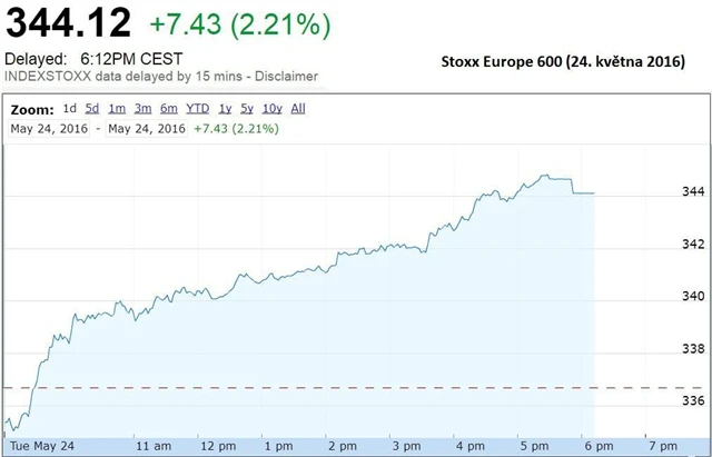 Britský FTSE 100 připsal 1,35 %, francouzský CAC 40 zpevnil o 2,46 % a německý DAX přidal 2,18 %. Regionální STOXX Europe 600 zpevnil o 2,2 %.