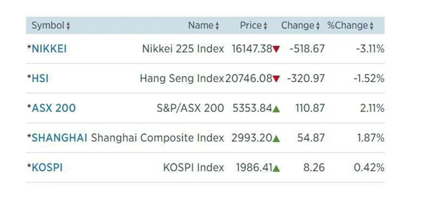 Obchodování na asijských akciových trzích se v úterý ubíralo rozdílnými směry. Zatímco australská burza stoupala a tamní dolar prudce poklesl v reakci na rozhodnutí centrální banky snížit úrokové sazby, nepříznivé makroekonomické zprávy z Číny trhy přijaly v klidu.