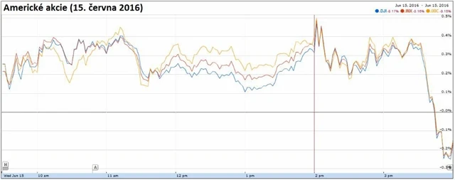 Americké akcie po oznámení výsledku zasedání Fedu zrychlily růst, později se ale vrátily zhruba na předchozí úrovně. Závěr seance pro ně ale byl špatný, když všechny zisky odevzdaly a svezly se pod nulu.