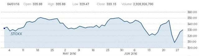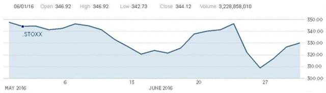 Vývoj indexu STOXX Europe 600 v průběhu června