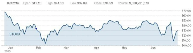 Vývoj indexu STOXX Europe 600 v průběhu prvního pololetí