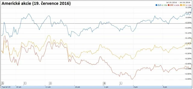 Index Dow posílil o 0,14 % na nové zavírací maximum 18 559,01 bodu, širší S&P 500 ale klesl o 0,14 % na 2 163,78 bodu a index technologického trhu Nasdaq Composite oslabil o 0,38 % na 5 036,37 bodu. Index volatility VIX klesl o 3,78 % na 11,97 bodu a výnos 10letých vládních dluhopisů USA se snížil o tři bazické body na 1,5543 %.