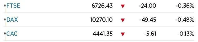 Celoevropský index STOXX Europe 600 klesal v prvních minutách obchodování o 0,18 %, podobně na tom byly i indexy jednotlivých trhů.