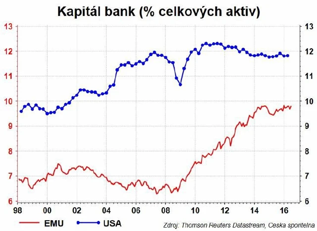 "Pozitivem je navyšování kapitálu bank v posledních letech. Snaha finančních domů zvýšit svou kapitálovou přiměřenost je ale také důvodem, proč banky neúvěrují ekonomiku tak, jak by si ECB představovala. Nejde mít totiž obojí, tedy banky, které zvesela půjčují a zároveň jsou 100% bezpečné," dodal Navrátil.