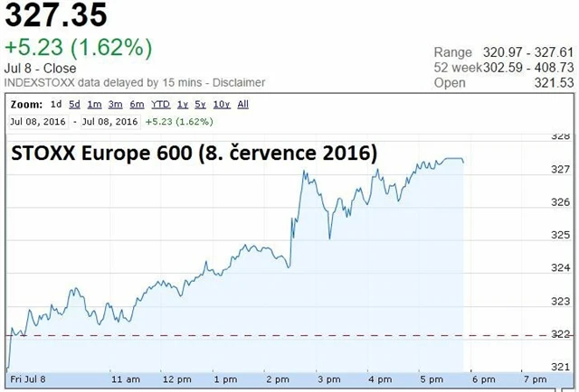 Ve druhé polovině pátečního obchodování se odrazila nečekaně příznivá statistika tvorby nových pracovních míst v USA. Americká ekonomika podle ní v červnu mimo zemědělství vytvořila zhruba 287 tisíc míst. Trh čekal, že vzniklo jen asi 180 tisíc míst. Evropské akcie díky datům navýšily předchozí zisky.