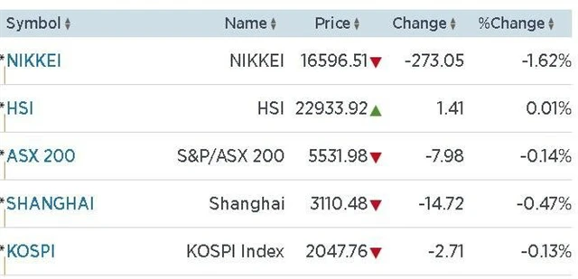 Hongkongský index Hang Seng by jedný, který v úterý skončil v s minimálnim ziskem 0,01 procenta. Burzy v Jižní Koreji a pevninské Číně se uzavřely v červených číslech.
