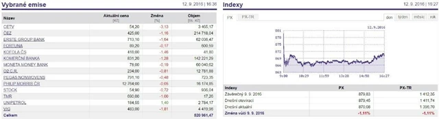 Index PX odepsal 1,11 % na 870,08 bodu.