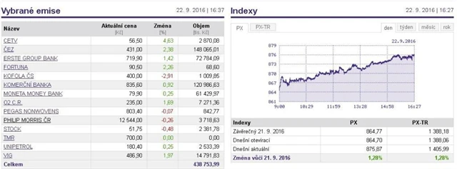 Pražská burza se připojila k celosvětovému akciovému růstu, uvedl analytik Komerční banky Miroslav Frayer. "K růstu zavelely všechny velké emise," dodal. Dnešní objem obchodů byl nižší než ve středu a zaostal také za průměrem za poslední rok, podotkl Petr Zelenka z Patria Online.