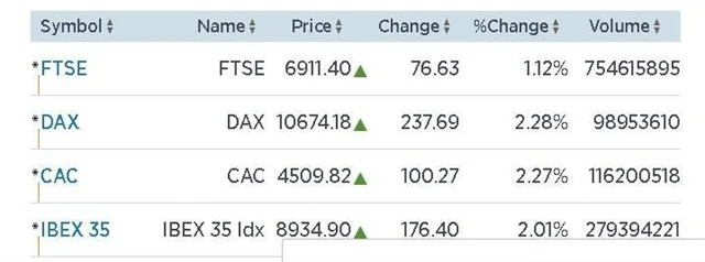 Podobně si vedly indexy jednotlivých velkých akciových trhů západní Evropy, které si vesměs připsaly více než dvě procenta.