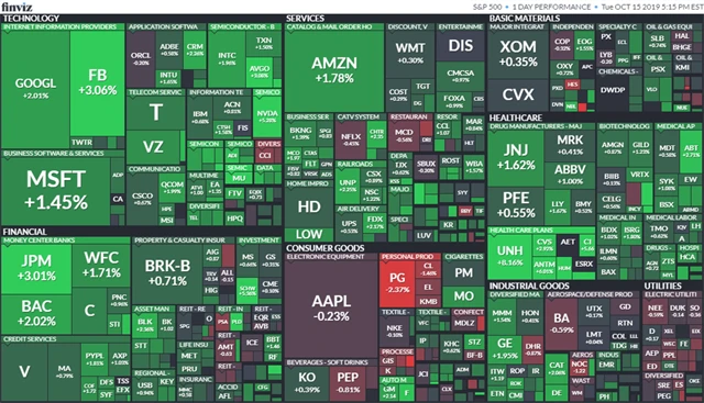 Hospodářské výsledky zveřejnily největší americké banky. Vůbec největší americké bankovní společnosti JPMorgan Chase (+3,01 %) stoupl v třetím čtvrtletí čistý zisk meziročně o osm procent na 9,1 miliardy dolarů. Nárůst zisku zaznamenal rovněž domácí konkurent Citigroup (+1,4 %), rivalovi Goldman Sachs (+0,31 %) však čtvrtletní zisk výrazně klesl.