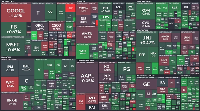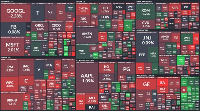 Dařilo se většině hlavních sektorů, nejvíce stouply energetické odvětví, sektor veřejných služeb, průmyslový sektor a realitní odvětví. Lehce pod nulou skončily sektor cyklického spotřebního zboží, odvětví zdravotní péče, sektor základních materiálů a technologické odvětví.