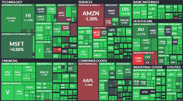Za celý uplynulý týden index Dow posílil o 2,21 %, S&P 500 se zvýšil o 3,04 % a Nasdaq Composite vzrostl o 6,09 %.