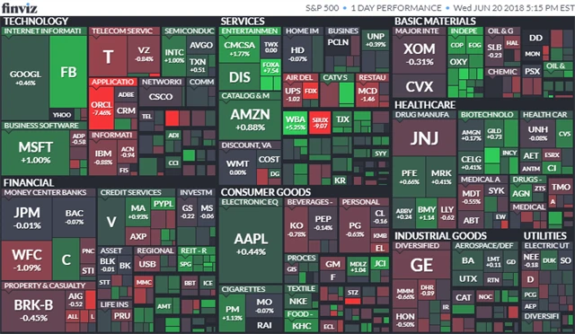 Dařilo se i velkým technologickým firmám, jako jsou Facebook (+2,28 %), Alphabet (+0,46 %) nebo Amazon (+0,88 %), na které obavy z obchodní války nemají téměř žádný dopad.
