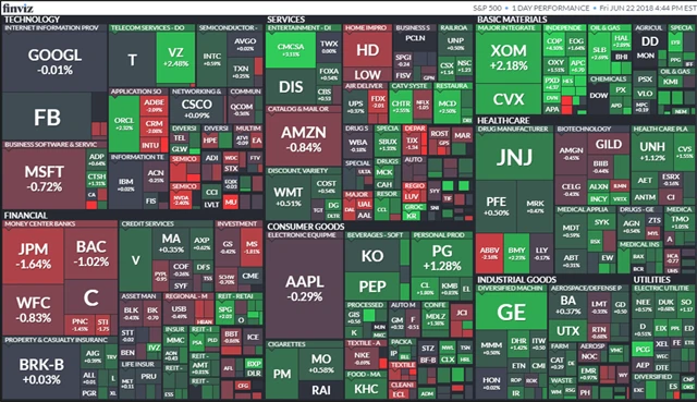 Ceny ropy v pátek výrazně stouply, když reagovaly na zprávu, že Organizace zemí vyvážejících ropu (OPEC) zvýší od července těžbu asi o milion barelů denně. Podle analytiků se však nejedná o dostatečné zvýšení. Z tohoto vývoje těžily akcie ropných firem ExxonMobil (+2,13 %) a Chevron (+2,05 %).