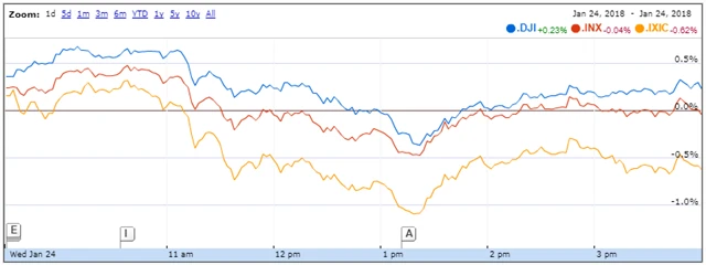 Akcie ve Spojených státech uzavřely středeční obchodování smíšeně. Náladu na trhu po počátečním výstupu indexů na nová maxima zasáhly výroky amerického ministra obchodu Wilbura Rosse, které rozvířily obavy ohledně možné obchodní války USA s Čínou.