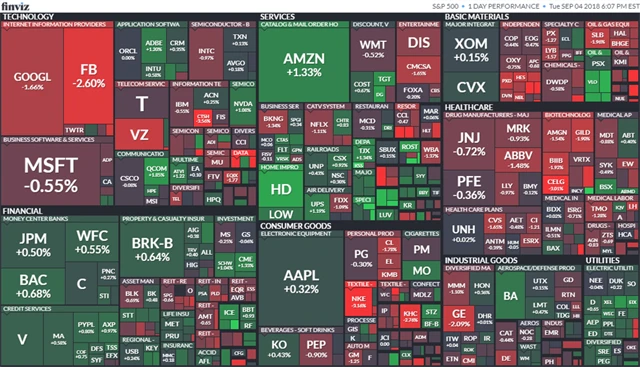 Index Dow ztratil 0,05 % na 25 952,48 bodu, širší index S&P 500 klesl o 0,17 % na 2 896,72 bodu a index technologického trhu Nasdaq Composite se snížil o 0,23 % na 8 091,25 bodu. Index volatility VIX stoupl o 2,33 % na 13,16 bodu a výnos 10letých vládních dluhopisů USA se zvýšil o čtyři bazické body na 2,9 %.