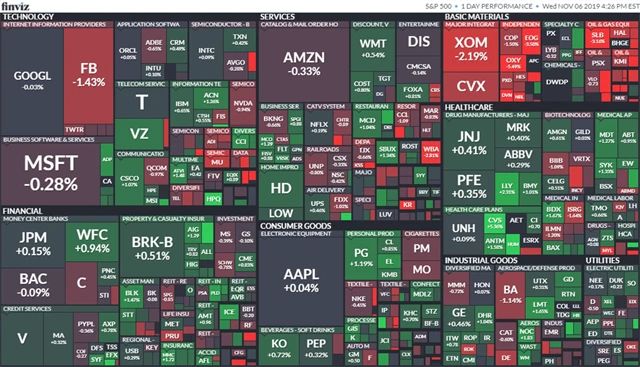 Index Dow klesl o 0,07 bodu na 27 492,56 bodu a index technologického trhu Nasdaq Composite klesl o 0,29 % na 8410,63 bodu, zatímco index S&P 500 naopak stoupl o 0,07 % na 3 076,78 bodu. Index volatility VIX klesl o 3,66 % na 12,62 bodu a výnos 10letých vládních dluhopisů USA se snížil o čtyři bazické body na 1,82 %.