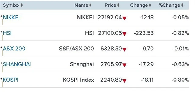 Hlavní trhy v regionu přesto navázaly na předcházející ztráty. Hlavní index tokijské burzy Nikkei 225 mírně poklesl o 0,05 procenta. Během dne však ztrácel i více než 300 bodů.
