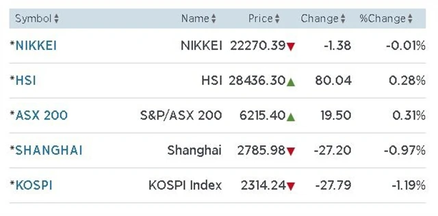 Korejský index Kospi poklesl o 1,19 procenta, když si špatně vedly především technologické tituly. Samsung Electronics a SK Hynix odepsaly 2,4 procenta a 2 procenta, a to navzdory tomu, že prvně jmenovaná firma urovnala svůj letitý patentový spor s americkým konkurentem Apple.