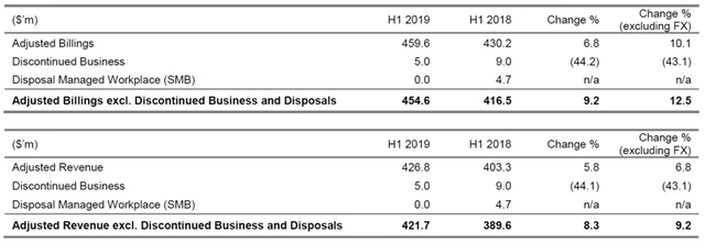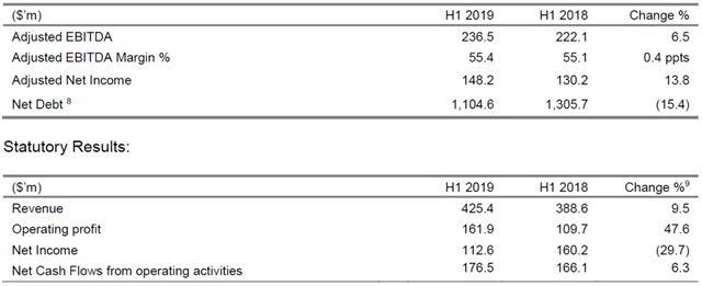Upravený provozní výsledek hospodaření před odpisy (EBITDA) vzrostl v pololetí meziročně o 6,5 % na 236,5 milionu USD. Upravený zisk na akcii dosáhl 0,15 USD oproti 0,14 USD za první pololetí 2018.