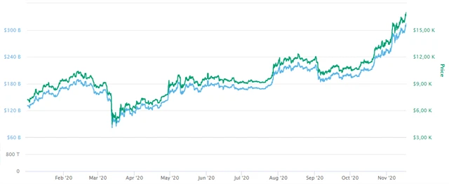 Kurz bitcoinu poprvé od ledna 2018 vystoupil nad 17 000 dolarů. Od začátku letošního roku se kurz nejpopulárnější kryptoměny více než zdvojnásobil a od začátku čtvrtého čtvrtletí stoupl o více než polovinu. Někteří experti vývoj přirovnávají k roku 2017, kdy se kurz bitcoinu vyšplhal až k 20 000 dolarů.
