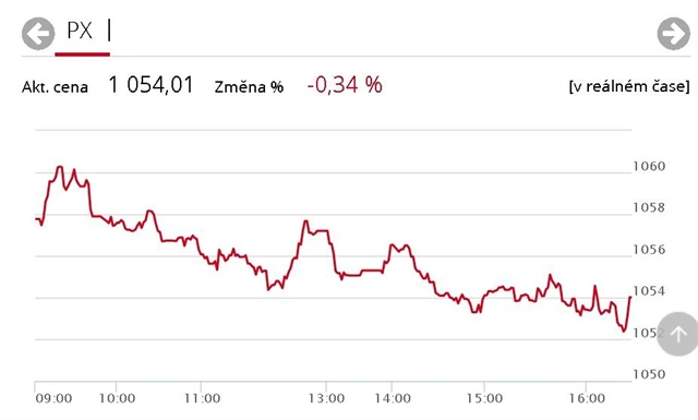 Pražská burza ve čtvrtek poprvé v tomto týdnu klesla, index PX oslabil o 0,34 % na 1 054,01 bodu. Dolů ho táhly Komerční banka s Erste Group Bank, stejně jako akcie likérky Stock Spirits. Zobchodovaný objem čítal 266 milionů korun.