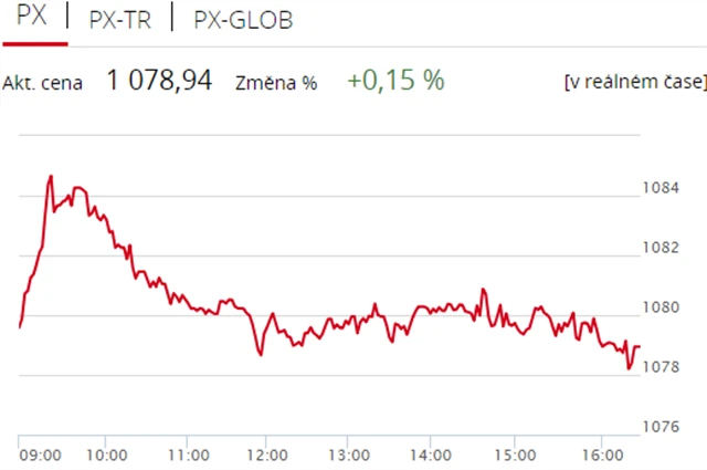 Pražská burza zakončila úterní obchodování v plusových číslech, když index PX zpevnil o 0,15 % na 1 078,94 bodu. Nahoru ji táhly zejména Erste Group Bank a energetická skupina ČEZ. Objem obchodů byl s 442 miliony korun podprůměrný.