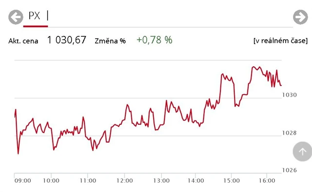 Index pražské burzy PX si během pondělního obchodování připsal 0,78 procenta a uzavřel seanci na hodnotě 1030,67 bodu. Obchodování dominovaly akcie energetické státní firmy ČEZ, jejichž zobchodovaný objem čítal 221 milionů korun z celkových necelých 406 milionů. V červených číslech byly pouze dvě ze třinácti hlavních emisí, Kofola ČeskoSlovensko (jež měla krátce po ukončení obchodování oznámit čtvrtletní výsledky) a softwarový výrobce Avast.