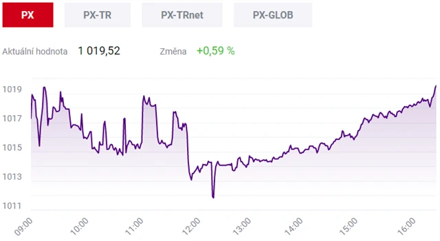 Pražská burza v pondělí uzavřela v plusu, index PX zpevnil o 0,59 % na 1 019,52 bodu. Nejvyšší zisk zaznamenaly akcie vývojáře antivirového softwaru Avast, které zdražily o 3,64 % na 114 Kč. Objem obchodů byl s 444 miliony korun podprůměrný.