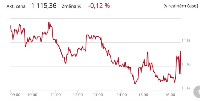 Sérii pěti růstů v řadě přerušily akcie O2. Cenné papíry operátora ubraly 1,58 % na 280,50 Kč. Nejvíce odepsala CME, její akcie klesly o 2,48 %.