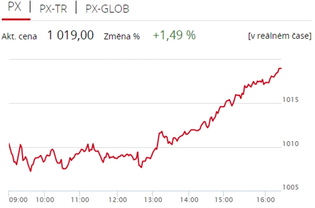 Pražská burza ve středu navázala na zisk z úterního obchodování, když index PX zpevnil o 1,49 % na 1 019 bodů. Nahoru burzu táhly zejména akcie Komerční banky, proti trendu naopak šel telefonní operátor O2 Czech Republic. Objem obchodů byl s více než miliardou korun nadprůměrný.