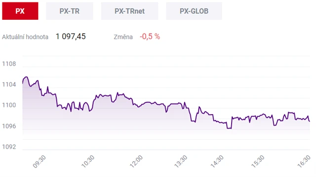Pražská burza zakončila pondělní obchodování v červených číslech, index PX klesl o 0,5 % na 1 097,45 bodu. Dolů burzu stáhly zejména akcie vývojáře antivirového softwaru Avast, které zlevnily o 3,65 % na 132 Kč. Dařilo se naopak energetické skupině ČEZ, jež si připsala 0,8 % na 504 Kč. Objem obchodů byl s 206 miliony korun výrazně podprůměrný.