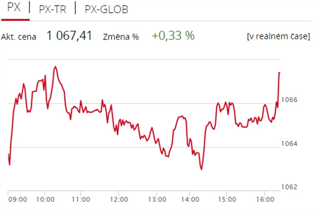 Pražská burza zakončila páteční obchodování v plusu, index PX vzrostl o 0,33 % na 1 067,41 bodu. Nahoru burzu táhly zejména akcie elektrárenské skupiny ČEZ, které zlevnily o 1,83 % na 528,50 Kč. Nedařilo se naopak Erste Group Bank, jež klesla o 1,49 % na 844,20 Kč. Objem obchodů byl s 407 miliony korun podprůměrný.