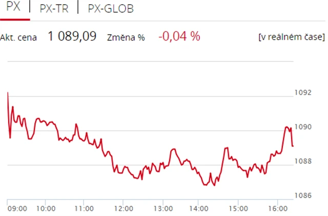 Pražská burza ve středu uzavřela téměř beze změny, když index PX přišel o 0,04 % na 1 089,09 bodu. Dolů burzu stáhly zejména akcie Erste Group Bank, dařilo se naopak Monetě Money Bank a energetické skupině ČEZ. Objem obchodů byl s necelými 300 miliony korun výrazně podprůměrný.