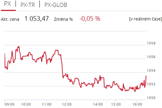 Pražská burza zakončila páteční obchodování v červených číslech, index PX však odevzdal pouze 0,05 % na 1 053,47 bodu. Za poklesem stály zejména akcie energetické skupiny ČEZ, které zlevnily o 0,73 % na 542 Kč, dařilo se naopak Monetě Money Bank, jež zpevnila o 1,43 % na 77,80 Kč. Objem obchodů byl se 790 miliony korun nadprůměrný.