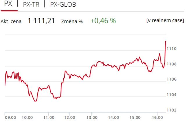 Pražská burza se ve středu odrazila od ztráty z úterní seance, když index PX zpevnil o 0,46 % na 1 111,21 bodu. Nahoru burzu táhly cenné papíry Erste Group Bank a Monety Money Bank, v mínusu naopak skončily energetická skupina ČEZ a Komerční banka. Objem obchodů byl s 585 miliony korun mírně nadprůměrný.